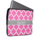 Hot Pink2 Wht Moroccan #5 Dark Grey Name Monogram Laptop Sleeve