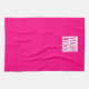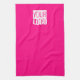 Hot pink kitchen towel with a solid background and a cover logo. Customize it now. Modern and trendy design by Alma Wad.