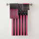 Hot Pink and Black Polka Dots and Stripes Bath Towel Set