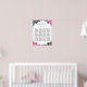 Hot pink and black wedding seating chart for 12 tables featuring elegant floral lace.