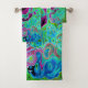 Hot Pink and Blue Groovy Abstract Retro Swirl Bath Towel Set
