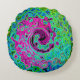 Hot Pink and Blue Groovy Abstract Retro Swirl Round Pillow