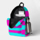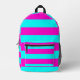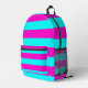 Backpack all over print cut sew style storage bag printed with Hot Pink And Cyan Blue Green Turquoise Stripes artwork design illustration by TheFabricSeal at Zazzle.com #Zazzle Made https://www.zazzle.com/store/thefabricseal.