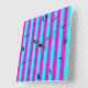 Hot Pink And Cyan Blue Green Turquoise Stripes Square Wall Clock