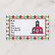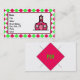 A teacher business card featuring the logo of The Pink Schoolhouse surrounded by a hot pink and lime green argyle border. Customize the front with your information. Customize the back with your initials.