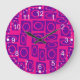 Hot Pink and Purple Fun Circle Square Pattern Large Clock