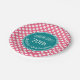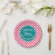 Hot Pink and Teal Polka Dots with Custom Monogram Paper Plate