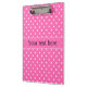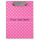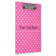 White and hot pink polka dot pattern clipboard. Small white polka dots on a hot pink background.