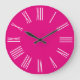 Hot Pink and White Roman Numerals Large Clock