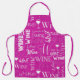 Hot pink and white typography wine pattern apron.