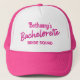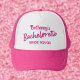 Dress the Bride Squad in matching Hot Pink Bachelorette trucker hats. Super cute for your days or nights out together celebrating your bestie. Personalized with the bride's name at the top and Bachelorette in a retro 90s script. The "Bride Squad" text can also be customized with "Team Bride" "Bride Tribe" or the Location or guest's name.