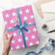 Birthday Gift Wrap wrapping Paper Hot Pink with white stars
