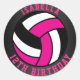 Hot Pink, Black and White Volleyball Birthday Classic Round Sticker
