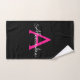 Black and Hot Pink Simple Script Monogram Name Bath Towel. This makes the perfect sweet 16 birthday, wedding, bridal shower, anniversary, baby shower or bachelorette party gift for someone that loves glam luxury and chic styles.
