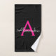 Hot Pink Black Girly Script Monogram Name Hand Towel