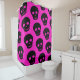 A cool black goth skulls pattern, in giant polka dots, on hot pink.