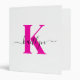 This simple, elegant white 1" capacity 3 ring binder with your first name in a trendy script font in black typed over your first initial in a modern cap font in hot pink is perfect for keeping your recipes, photos, papers neat and tidy. It's stylish and trendy and yet very classic.
