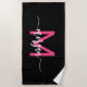 Hot Pink Black Modern Script Girly Monogram Name Beach Towel