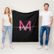 Hot Pink Black Modern Script Girly Monogram Name Fleece Blanket
