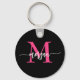 Hot Pink Black Modern Script Girly Monogram Name Keychain
