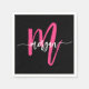 Hot Pink Black Modern Script Girly Monogram Name Napkin