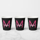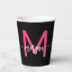 Hot Pink Black Modern Script Girly Monogram Name Paper Cups