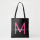 Hot Pink Black Modern Script Girly Monogram Name Tote Bag