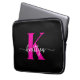 This simple, elegant black 13" laptop sleeve with your first name in a trendy script font in white and your first initial in a modern cap font in hot pink is perfect for you. It's stylish and trendy and yet very classic. It's unique - like you!