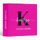 This simple, elegant hot pink 2" capacity 3 ring binder with your school subject, your first name in a trendy script font in white, your first initial in a modern cap font in black is perfect for keeping your school work and notes organized. It's stylish and trendy and yet very classic. Perfect for using in high school or college. It comes in many colorways so you can have a colour deisignated for each class your taking.