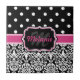 Elegant black and white damask pattern with polka dot pattern. This trendy girly gift features a black, pink and white nameplate for your customizable name and monogram. This would make a cool birthday gift for girls or Christmas present for her.