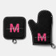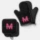 Personalized Custom Create Your Own Modern Black and Hot Pink Initial Name Monogram Oven Mitt and Pot Holder Set.