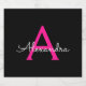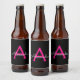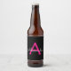 Hot Pink Black Script Girly Monogram Name Beer Bottle Label