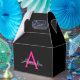 Hot Pink Black Script Girly Monogram Name Favor Box