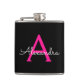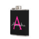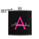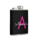 Hot Pink Black Script Girly Monogram Name Hip Flask