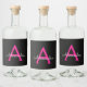 Hot Pink Black Script Girly Monogram Name Liquor Bottle Label