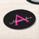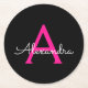Hot Pink Black Script Girly Monogram Name Round Paper Coaster