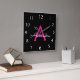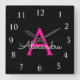 Hot Pink Black Script Girly Monogram Name Square Wall Clock