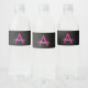 Hot Pink Black Script Girly Monogram Name Water Bottle Label