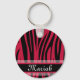 Modern elegant girly hot pink and black zebra stripe pattern with nameplate for your customizable first name or monogram initial letters. Cute geometric style graphic that would make a chic preppy gift for girls.