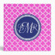 Super bright vibrant hot pink fuchsia and white quatrefoil pattern print with bright dark blue circle, a fun and festive combination of colours for this high school or college girls notebook binder. Keep sorority notes, or friends photos organized. Personalized with your three letter initials, great elegant fun keepsake or gift. Great for a hip and modern women , teachers or girls.