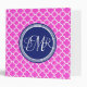 Hot Pink Blue Monogrammed Quatrefoil Personalized Binder