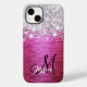 Hot Pink Brushed Metal Silver Glitter Monogram Case-Mate iPhone Case
