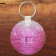 Hot Pink Brushed Metal Silver Glitter Monogram Keychain