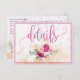 Easy to update wedding Details | Enclosure Card with a watercolor floral design containing hot pink flowers, pale roses, soft green eucalyptus leaves, and colourful pastel splashes.