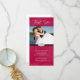 This Elegant Wedding Thank You photocard has a trendy hot pink circles pattern background with a shiny diamond and silver oval in the middle on top of a black band. At the top, Thank You is written in a sparkly silver colour. In the middle, you can easily customize this with a photograph of the bride and groom. At the bottom, you can easily personalize this with your message and the names of the bride and groom.