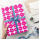 A wrapping paper designed with a hot pink dot pattern on a white background and name. Customize the wrapping paper with your special name or text among other options.