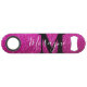 Hot Pink Faux Glitter Black White Monogram Name Bar Key