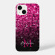 Hot pink faux glitter sparkles bling Monogram iPhone Case
