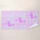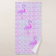 A bright pink flamingo standing on one leg with a variety of smaller flamingos with various shades of pink in the backround. Whimsical flamingo frenzy.
