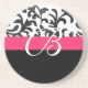 This beautiful floral coaster features a classy damask pattern in pink and black colours. Makes a great gift for wedding parties and as wedding favours. Add a name or initial for a personalized look!